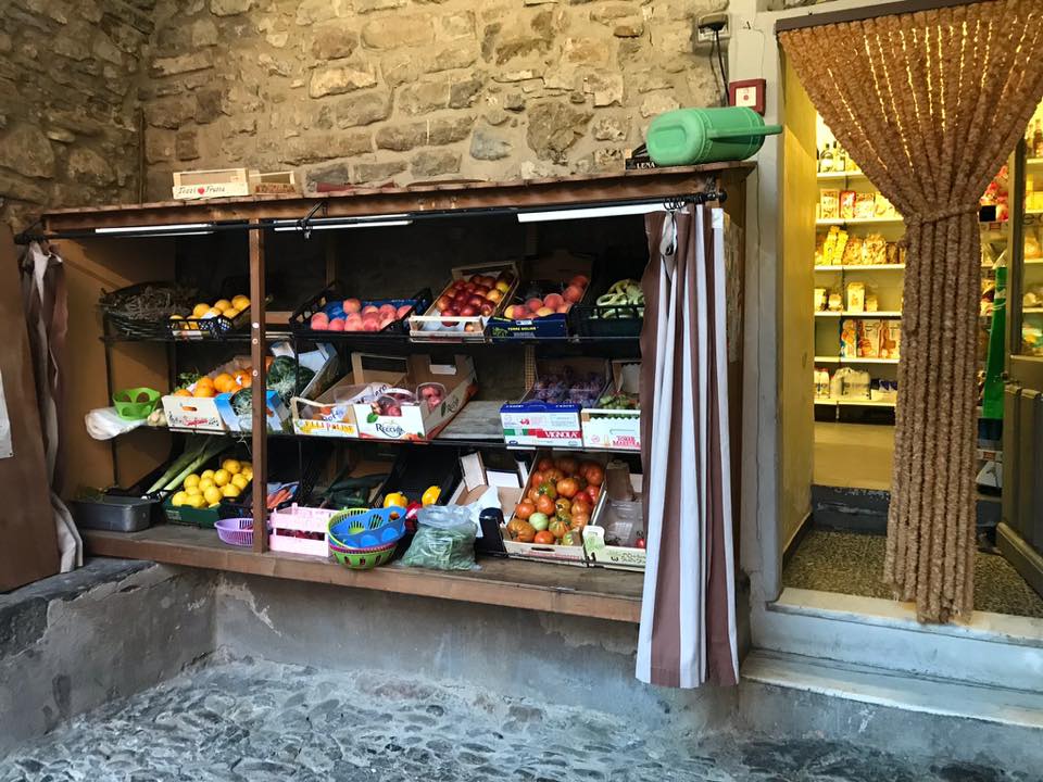 - Midt på torvet ligger den velforsynede købmand Maria Grazia, som har et stort udvalg af friske grøntsager, pecorino oste, parmaskinke m.m.
