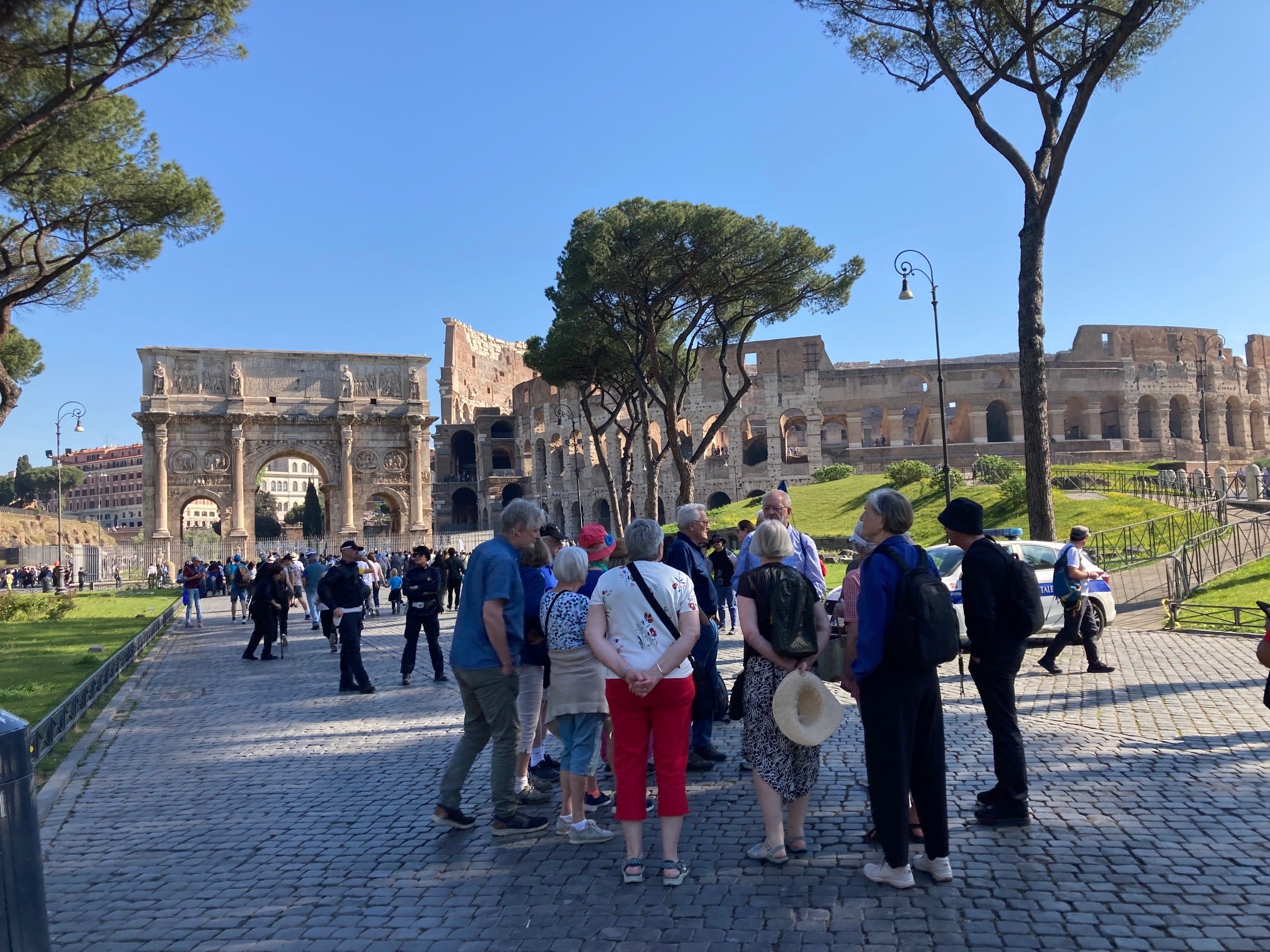 Vi passerer den største triumfbue, Konstantins, på vej op på Palatin, der både rummer masser af ruiner og samtidig er en smuk have højt over Roms trafik. Vi nyde udsigten ind over Forum og til den anden side ned over Circus Maximus.